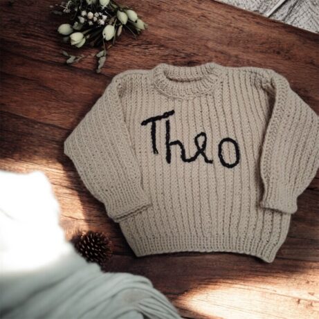 Personalizovaný pletený svetr se jménem Vašeho děťátka na zakázku.